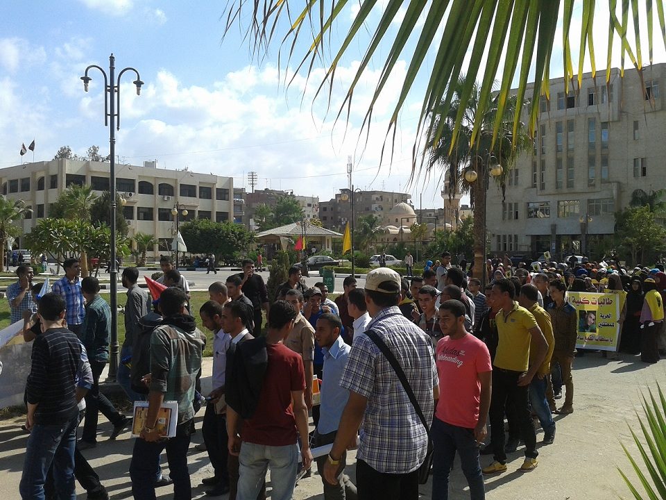 “طلاب ضد الانقلاب “بجامعة الفيوم في سلاسل مناهضة للانقلاب