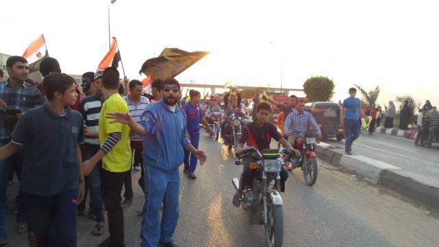ورفع المشاركون لافتات كتب عليها عبارات رافضة للانقلاب العسكرى منها يسقط يسقط حكم العسكر ، يانعيش سعداء يانموت شهداء ، سلميتنا أقوى من الرصاص ، كما قاموا بالتوقيع على استمارة باطل لرفض الانقلاب ورفعوا أعلام مصر ورمز الصمود رابعة وصور شهداء الشرعية وسط مشاركة فعالة لحركتى عفاريت وشباب ضد الانقلاب