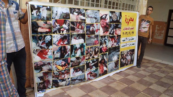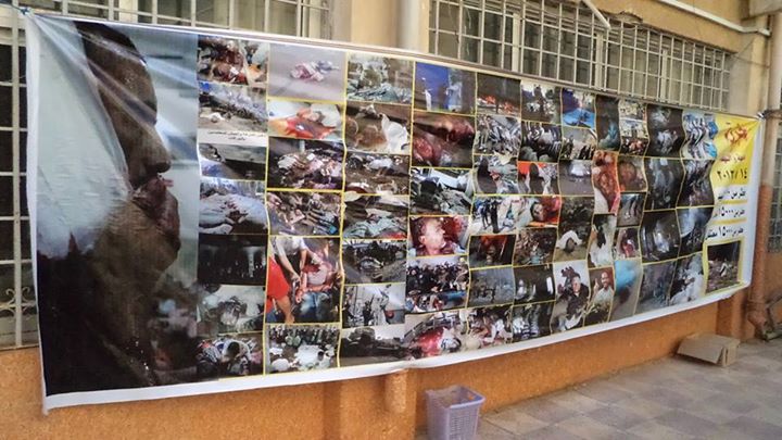 كما قام طلاب ضد الإنقلاب كلية التجارة جامعة دمياط صباح اليوم بعمل معرض مصور لمجازر الإنقلاب العسكري حيث عرضوا صور لمجزرة الحرس الجمهوري والنصب التذكاري وفض رابعة والنهضة ..