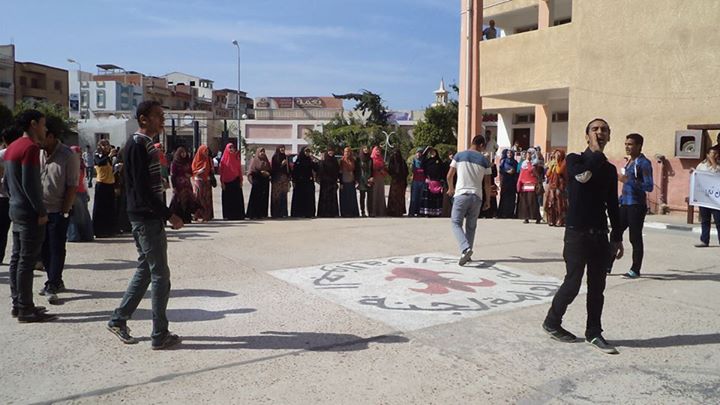 قآم طلاب ضد الانقلاب ظهر اليوم بعمل مسيرة مناهضة للانقلاب العسكرى وطالبوا بالافراج عن زملائهم المعتقلين ونددوا باءعتقال سبعه من زملائهم فى آخر فعالية بكلية التربية بدماط الجديدة .