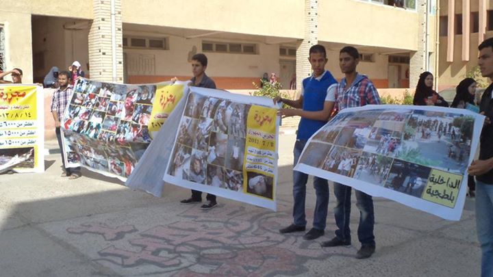 نظم طلبة جامعة بنى سويف اليوم مظاهرة بدأت عقب صلاة الظهر من مسجد الجامعة ليحيى فيها الطلاب صمود وثبات الرئيس محمد مرسى وارتفعت اعلام وبانرات الرئيس وايضا اللافتات التى تطالب بالافراج عن كافة المعتقلين السياسين ……