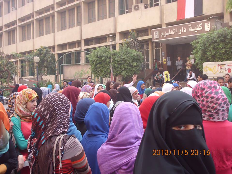 أما  طلاب دار العلوم جامعة القاهرة  فقد تظاهروا ضد قرار الإدارة بفصل 4 زملاء لهم  حيث  تجمع عدد كبير من الطلبة والطالبات للتنديد بقرار مجلس إدارة الكلية بفصل 4 زملاء لهم بزعم من إدارة الكلية مشاركتهم فى الوقفة التى حدثت ضد المفتى السابق الدكتور على جمعة أثناء زيارته للجامعة .