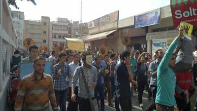 فيما قام طلاب ضد الانقلاب بدمنهور بدأت من المجمع العلمي لجامعه دمنهور متجهه الي المنطقه الازهريه متحده مع طلاب ثانوي ضد الانقلابمرددين هتافات " الطلبه قالت كلمتها .. السيسي تحت جزمتها "و" اثبت يا شعب خليك حديد .. وراك يا شعب رئيس شديد "و"الطلبه تحيي صمووود الرئيس ".