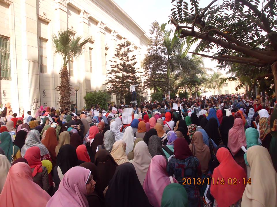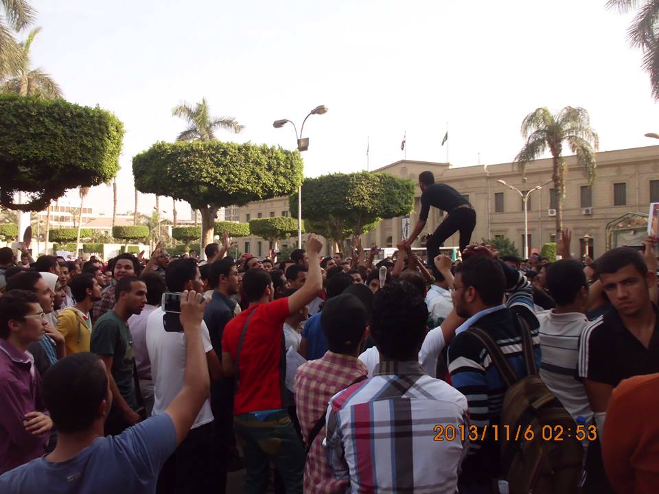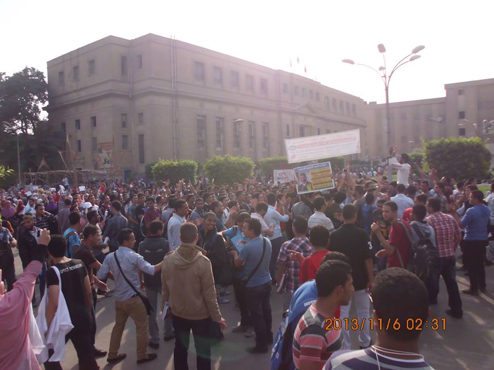 وبعد ان انتهى طلاب كلية دار العلوم من وقفتهم ضد قرار مجلس إدارة الكلية بفصل زملائهم , حشد طلاب ضد الإنقلاب جامعة القاهرة عدد كبير من الطلبة والطالبات من أمام المكتبة المركزية للجامعة , وأثناء المسيرة وقع عدد من الإشتباكات بين عدد من الطلبة المؤيدين للإنقلاب والطلبة المعارضين له وأمن الجامعة , ولم تسفر الاشتبكات عن وقوع آية اصابات واستئنف السير حتى مبنى إدارة الجامعة .