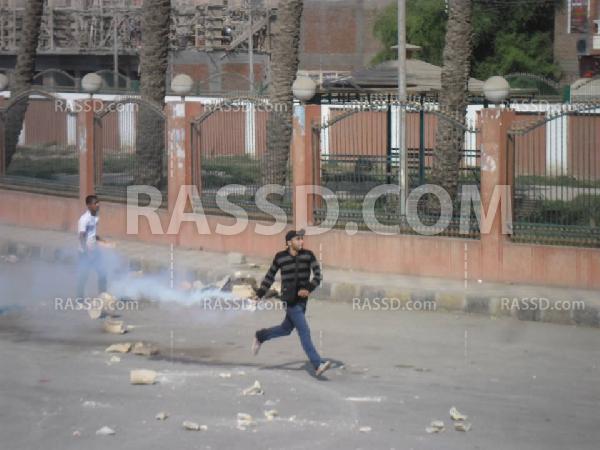 ويشهد ميدان أسماء الله الحسنى المتواجد خارج الجامعة حالة من الكر الطلاب المحتجّين، وقوات أمن الانقلاب.