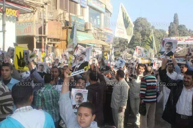 ورفع المشاركون صورة الرئيس محمد مرسي، وعلامات رابعة، وسط تجاوب من الأهالي، والمارة.