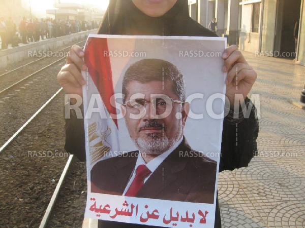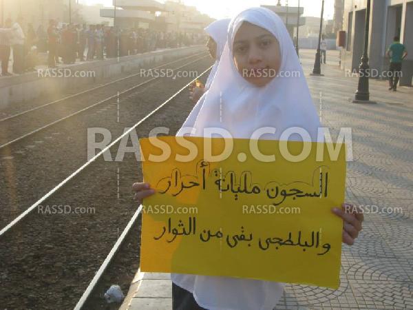 وحمل المشاركون صور الرئيس محمد مرسي، ولافتات تطالب بالإفراج عن حرائر الإسكندرية، و المنصورةـ لتنتهي بوقفة ضد العسكر.