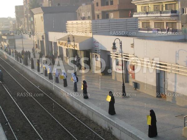 نظمت حركة طالبات ضد الإنقلاب صباح اليوم السبت سلسلة بشرية بمحطة قطار كفر صقر التابعة لمحافظة الشرقية .