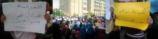 كما نظم طلاب كلية التربية جامعة المنصورة وقفة اليوم، للمطالبة بالإفراج عن الطلبة المعتقلين من كلية التربية ومن ضمنهم يسرا الخطيب، وعادل فهمي.