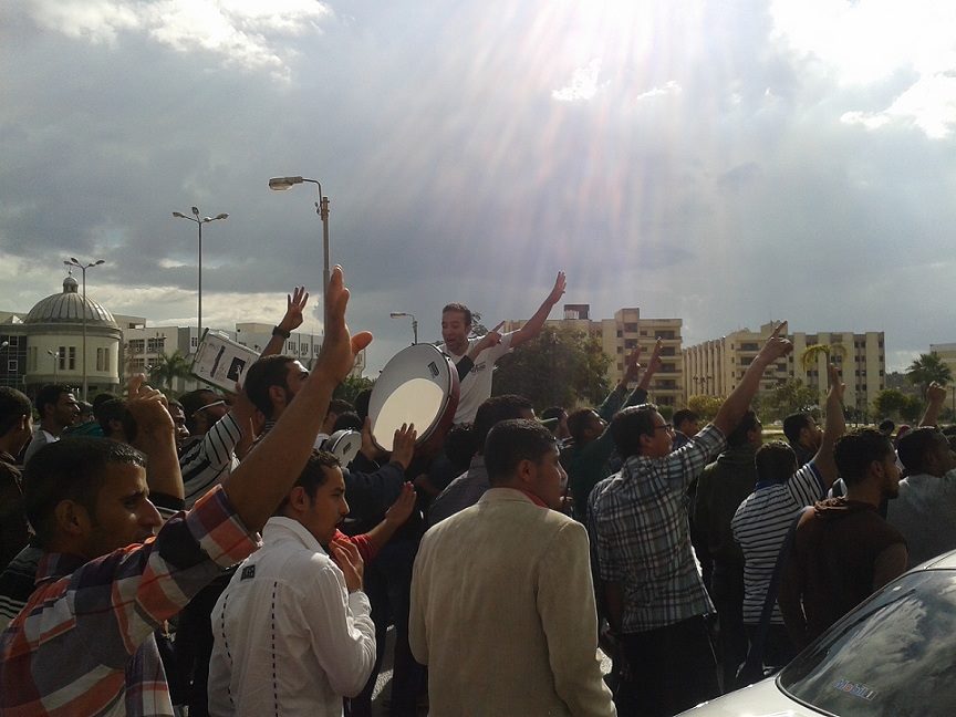 طلاب جامعة الفيوم يتظاهرون احتجاجا على اعتقال زملائهم