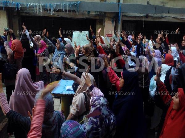 نظم طلاب المجمع الطبي بجامعة الاسكندرية اليوم (الأثنين) تظاهرة مناهضة اانقلاب وداعمة لعودة الشرعية و منددة باعتقال الطالبات .