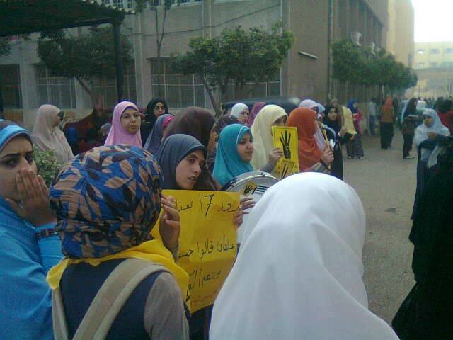 تواصل المظاهرات المناهضة للإنقلاب العسكري داخل كليتي التجارة ودراسات إنسانية – بنات – ، حيث طالب الطالبات بعودة الشرعية ورفض التحقيق معهن بسبب مشاركتهن في المظاهرات ، فيما أغلقت أبواب الكليات لمنعهن من الدخول.