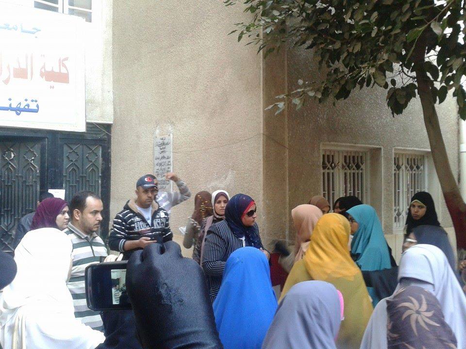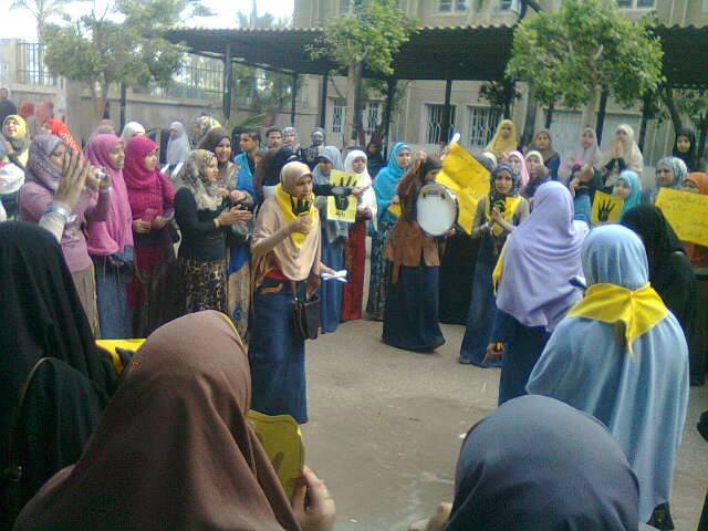 وحاولت دكتورة تدعي وجيهة التابعي تفريقهن بمعاونة أمن الكلية وبعض البلطجية وقامت بنزع بوسترات رابعة بنفسها من علي بوابات الكليات.