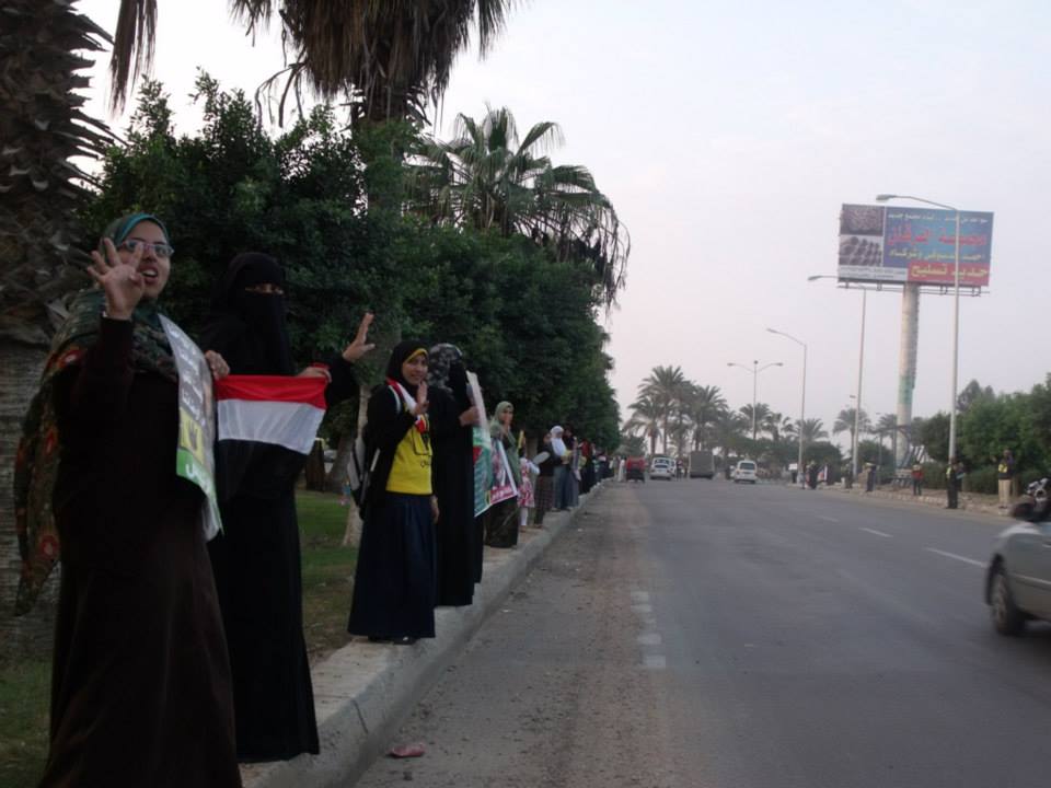 نظم العشرات من أهالى برج العرب بمحافظة الاسكندرية سلسلة بشرية عصر اليوم الاربعاء، بمدخل المدينة، رفضا للانقلاب العسكري.