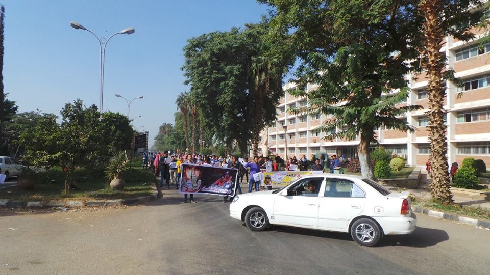 أما طلاب جامعة المنيا فقد قطعوا  الطريق الرئيسي داخل الجامعة في اطار فعاليات يوم غضب الطلاب علي احداث الازهر.