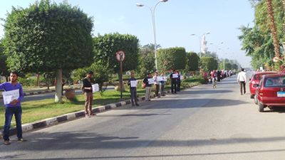 نظم عدد من طلاب جامعة 6أكتوبر وقفة صباحية لطلاب امام الباب الرئيسي للجامعة تنديدا باحداث الازهر...