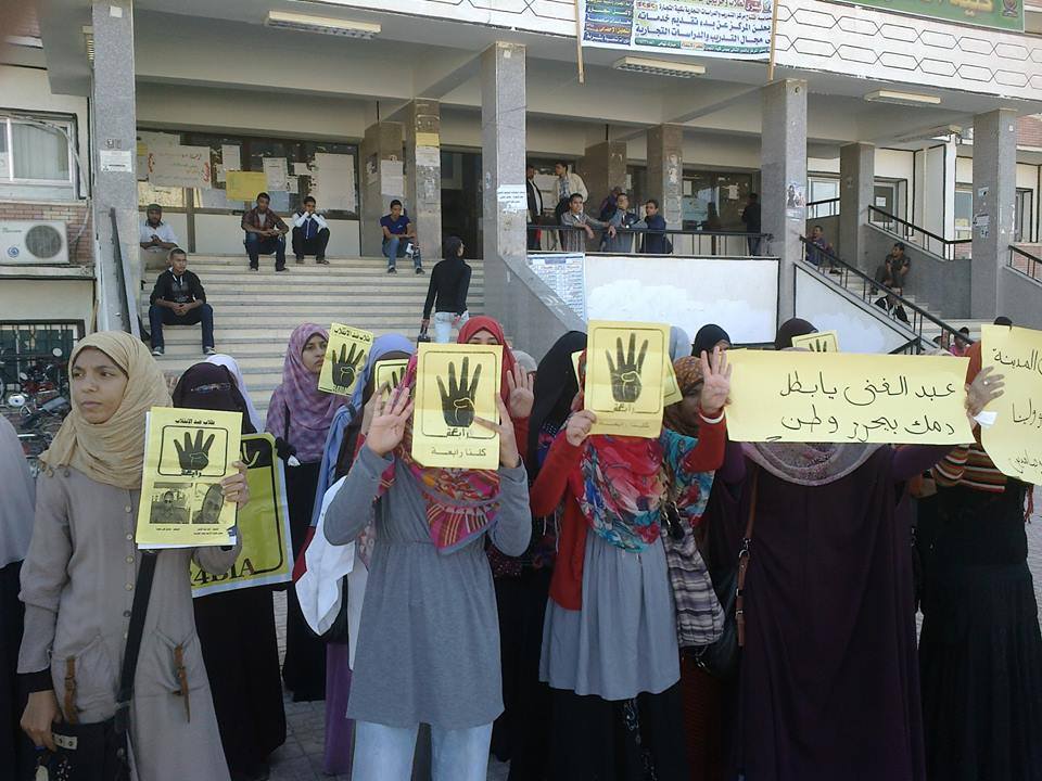 وفي جامعة جنوب الوادي بقنا فقد نظمت طالبات ضد الانقلاب وققفة احتجاجية  للتنديد بأحداث المدينة الجامعية بالأزهر.