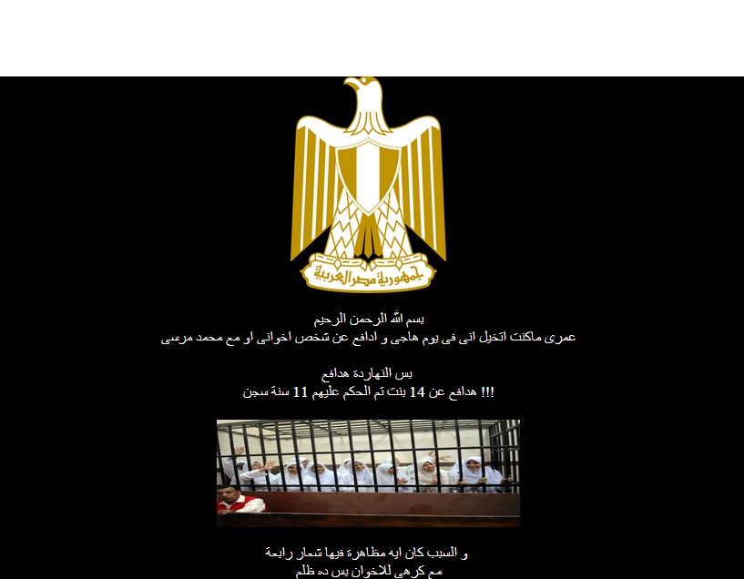 وقالوا في رسالة على الموقع:"عمرى ماكنت اتخيل انى فى يوم هاجى و ادافع عن شخص اخوانى او مع محمد مرسى بس النهاردة هدافع هدافع عن 14 بنت تم الحكم عليهم 11 سنة سجن !!!و السبب كان ايه مظاهرة فيها شعار رابعة مع كرهى للاخوان بس ده ظلم".