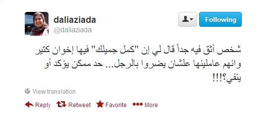 وقالت على صفحتها الرسمية على تويتر "شخص أثق فيه جدًا قال لي إن "كمل جميلك" فيها إخوان كتير وإنهم عاملينها علشان يضروا بالرجل.. حد ممكن يؤكد أو ينفي".