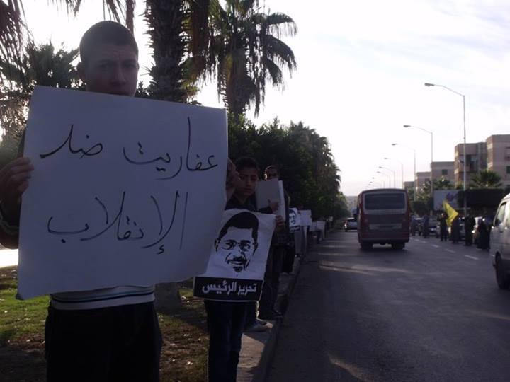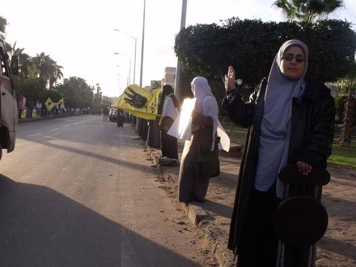 ورفع المشاركون إشارات رابعة العدوية، وصوراً للرئيس المنتخب محمد مرسي، وصوراً للفتيات السجينات، وسط هتافات مناهضة للانقلاب ولداخليته، وسط تفاعل كبير من المارة وسائقي السيارات.