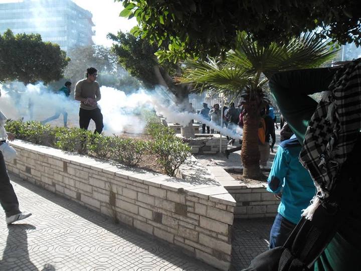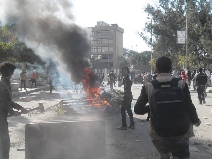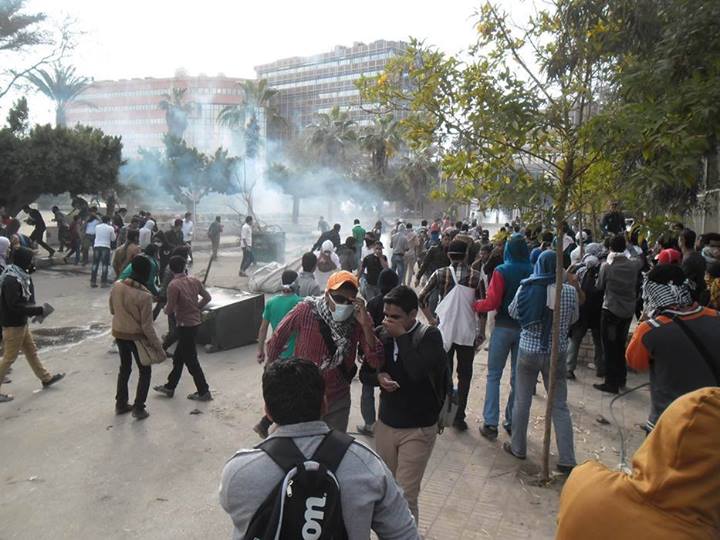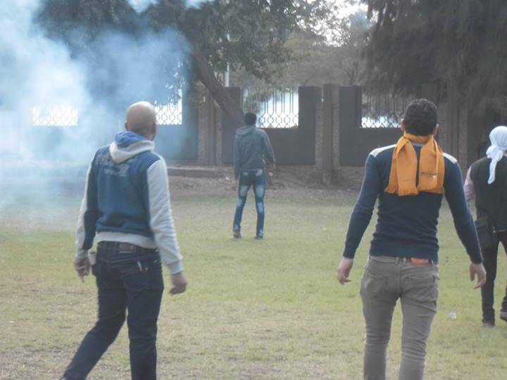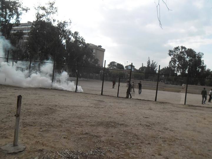وقامت قوات أمن الانقلاب  بإطلاق الغاز على الطلاب لمنع خروج المسيرة خارج الحرم الجامعى للمطالبة بالقصاص للشهداء من زملائهم، ويقوم الطلاب حاليا بالانسحاب من أمام باب كلية الطب إلى المدينة الجامعية بعد علمهم بقدوم حشود من داخلية الانقلاب أمام باب كلية الزراعة استعدادا لاقتحام الجامعة ومحاصرة الطلاب.