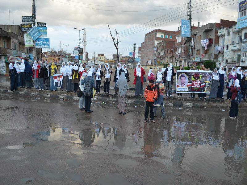 وشارك فى الوقفة طالبات الاعدادى والثانوى والأزهر وقد رفع المشاركات صور للرئيس المنتخب محمد مرسى والشهداء وشارة رابعة ورددت المشاركات "يسقط يسقط حكم العسكر" "الداخلية بلطجية" "