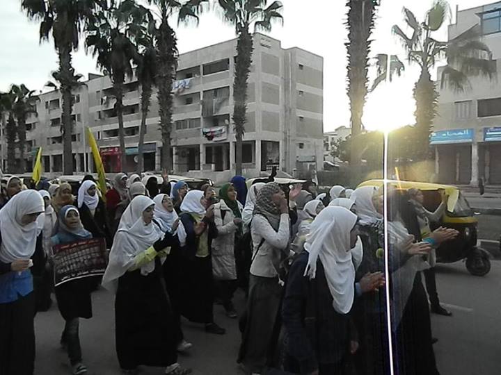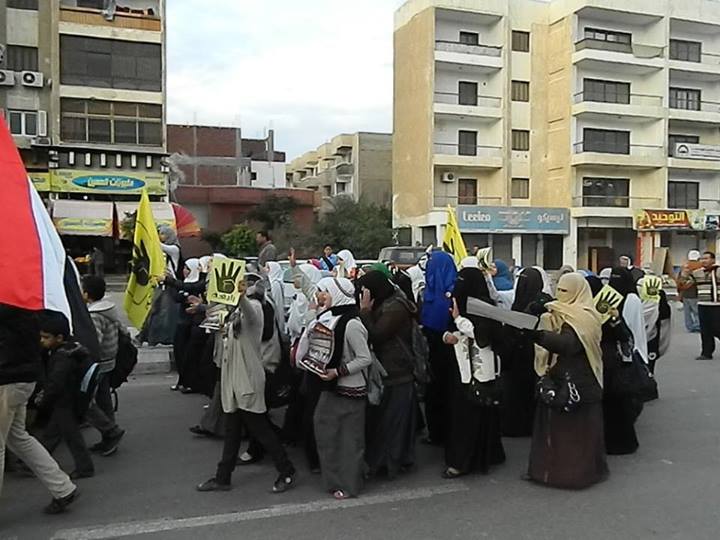وخرج المئات رافعين أعلام رابعة العدوية وصور الرئيس المنتخب محمد مرسي ومرددين هتافات مناهضه للانقلاب منها "يسقط يسقط حكم العسكر" وتعد هذه المسيره هي الأولى لحركة 7 الصبح ببرج العرب.