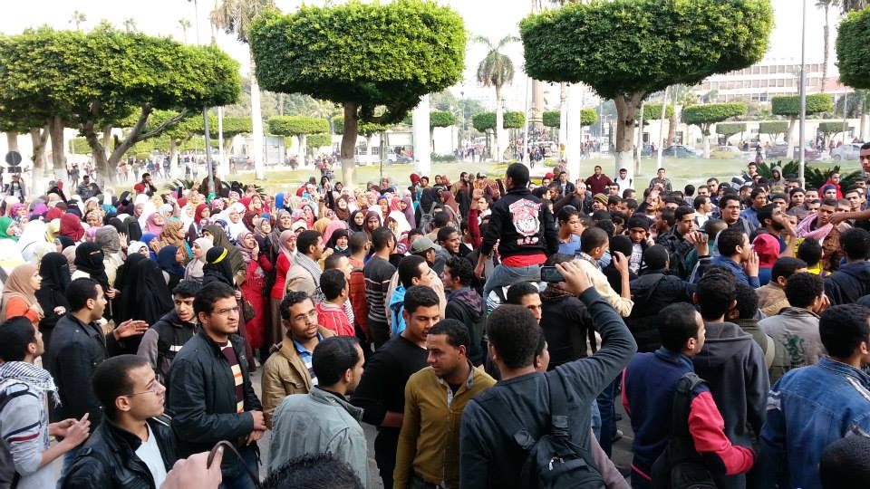 وقد قامت قوات أمن الانقلاب بالاعتداء علي المسيرة في بدايتها بالعصي ، في حين تجمعت الطالبات أمام كلية دار علوم وأكملوا المسيرة وتبعهم الطلاب حتي مكتب رئيس الجامعة.