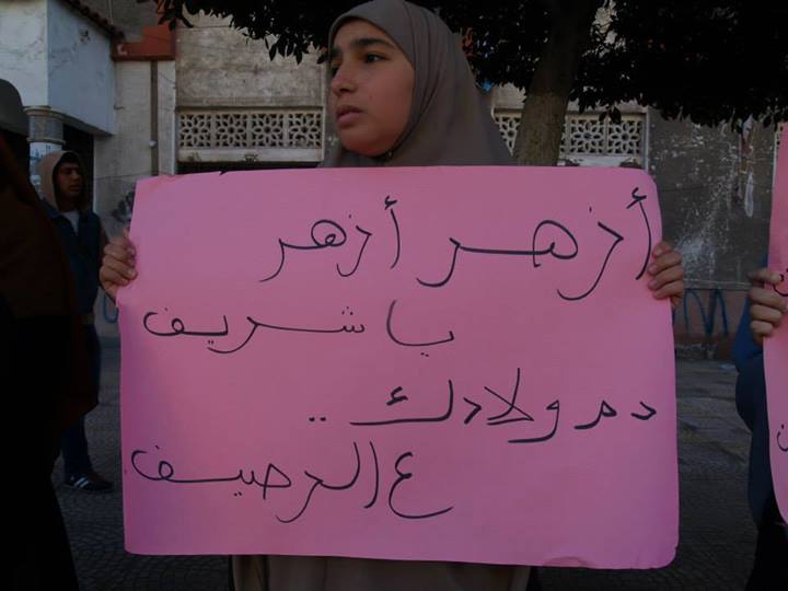 ورفع المشاركون في الفعالية شعارات رابعة العدوية و لافتات تندد بحكم العسكر ومقتل طلاب بجامعة الزهر والقاهرة وإصابة واعتقال العشرات .