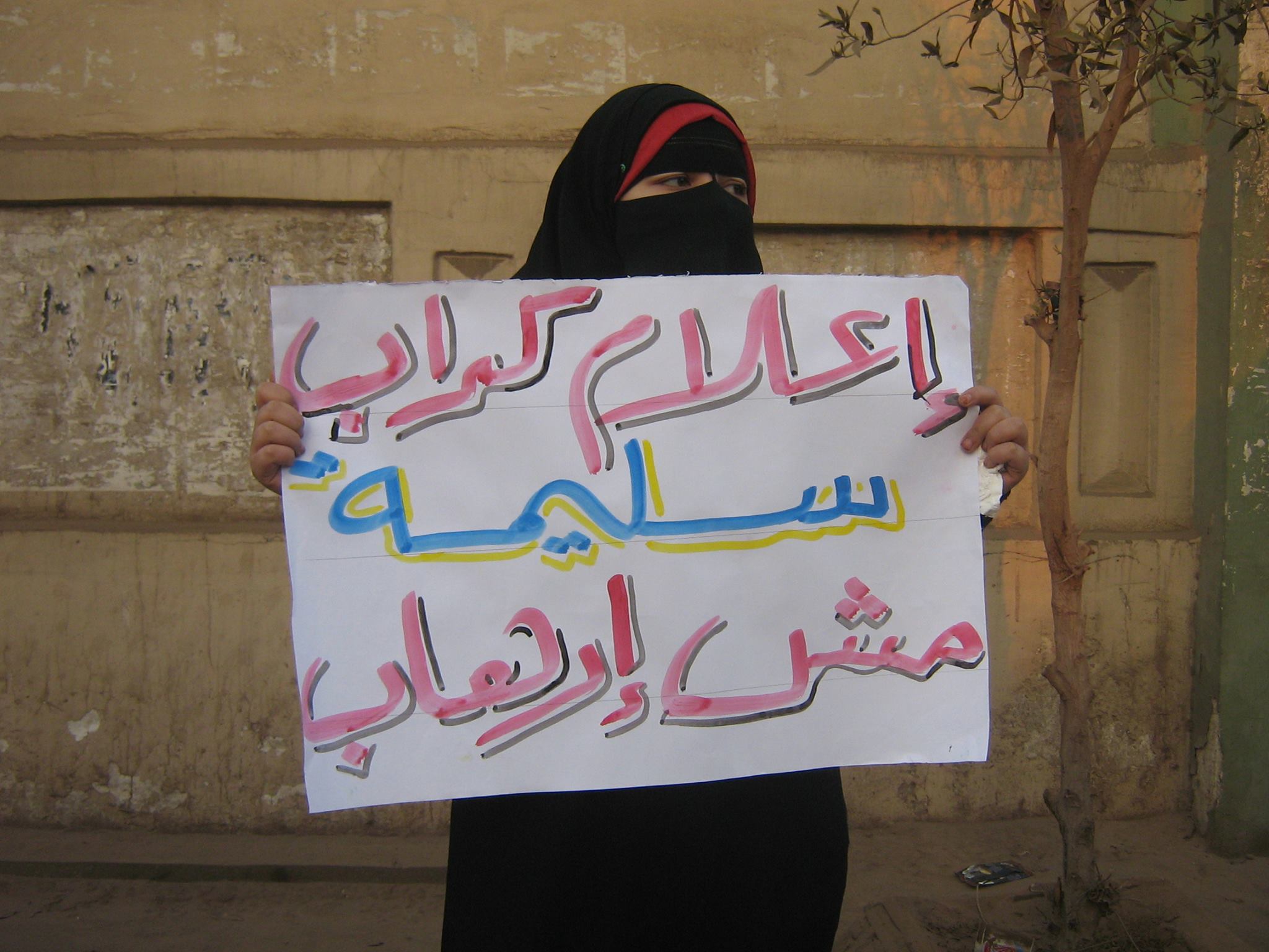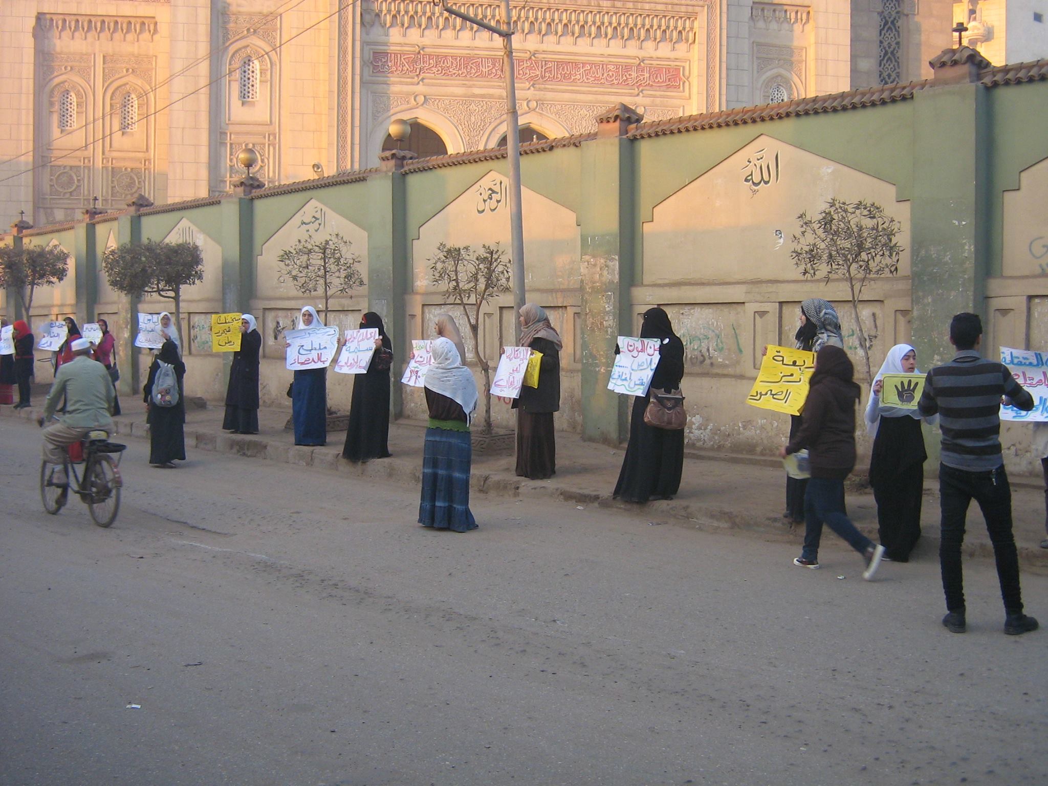 ورفعت المشاركات لافتات منددة بحكم العسكر وبداخلية الانقلاب ، وتؤكد على استمرار سلمية المتظاهرين ، واحتجاجا على اعتقال الفتيات .