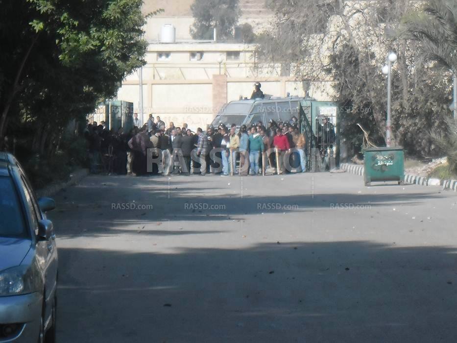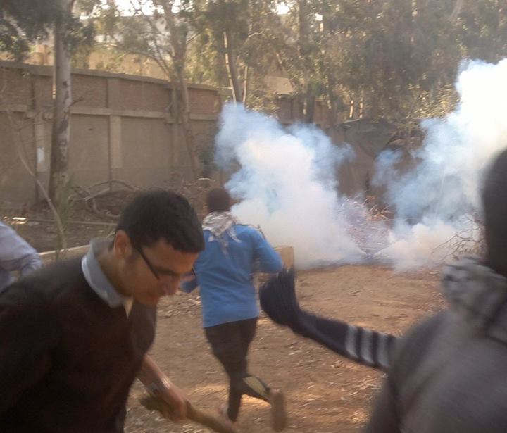 من جانبهم اقتحم الأمن الجامعه وأطلق قنابل الغاز على الطالبات المتظاهرات، وقام طلاب المدينة الجامعية بتسلق السور الذى يفصل بينهم والتصدى للأمن الإدارى الذى قام بالتعدى على الطالبات بعد انسحاب الشرطة .