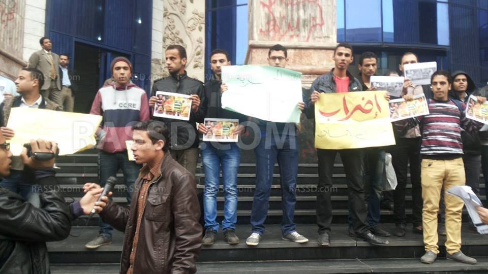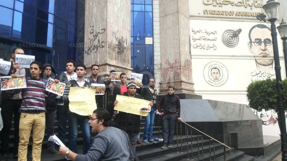 نظمت الفرقة الثانية ،بكلية الإعلام جامعة الأزهر،صباح اليوم،وقفه إحتجاجيه أمام نقابة الصحفيين ،في أول يوم لإمتحاناتهم للمطالبة بالإفراج عن زملائهم المعتقلين ،من الكلية وهم "محمود السنوسي ،محمد إسلام،محمد حمدي، أنس حمدي،مختار ضياء، السيد السويسي " .