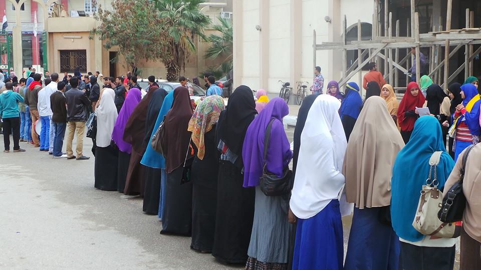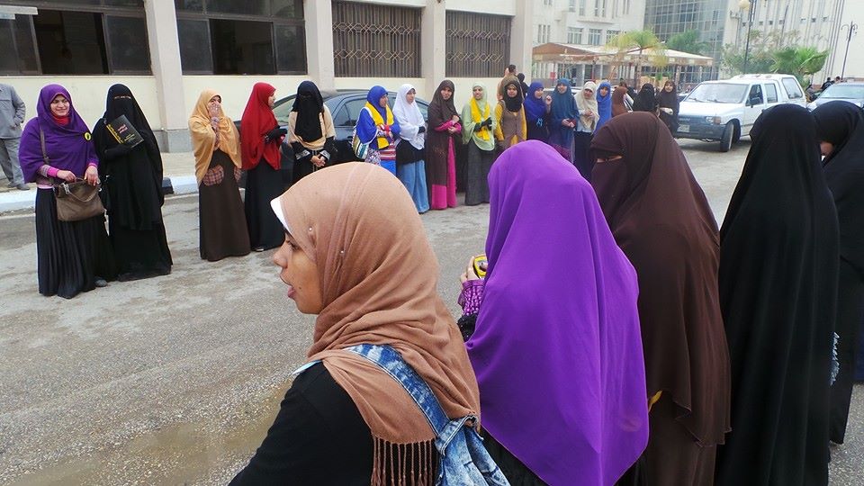 سلسلة بشرية بجامعة الفيوم رفضا لدستور الإنقلاب