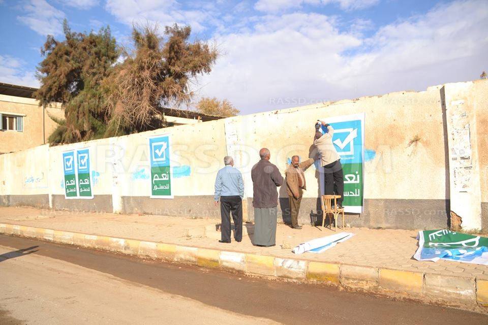 قامت العلاقات العامة للوحدة المحلية لمركز ومدينة الخارجة بمحافظة الوادى الجديد ،بتعليق لافتات نعم للدستور أمام مقر لجان الإستفتاء .