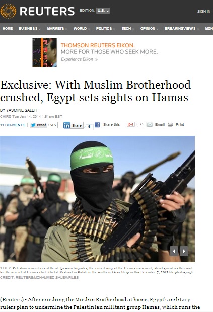 في مشهد يدل على التعاون الأمني المتميز بين مصر وإسرائيل ضد حركة حماس، أكدت قيادات كبيرة بالمؤسسة العسكرية المصرية، حسبما أوردت وكالة رويترز أن لديهم خطة لإسقاط حركة حماس التي تعد من أعداء النظام المصري الجديد والكيان الصهيوني أيضا، وأنه بعد التخلص من الإسلاميين في مصر، فإن هناك خطة للقيام بشيء مماثل مع حركة حماس في قطاع غزة.