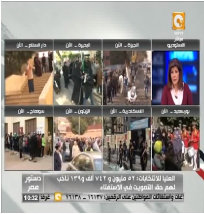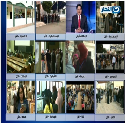 بينما ركزت أبرز القنوات المصرية التي تتمتع بمشاهدة عالية على اللجان المتواجدة بمحافظات وجه بحري والدلتا نظرا لوجود كثافة عددية بهذة اللجان وانتشار الطوابير الانتخابية بها.