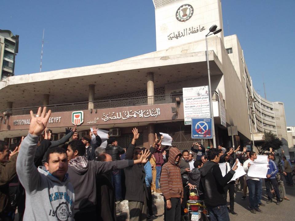 نظم التحالف الوطني لدعم الشرعية بمدينة المنصورة تظاهرة صباح الجمعة أمام مبني محافظة الدقهلية ،رفضا للانقلاب العسكرى في أسبوع "التصعيد الثوري" .