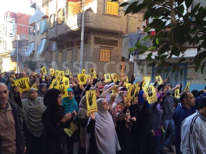 احتشد أهالي المنزلة بمحافظة الدقهلية في تظاهرة قبل صلاة الجمعة تنديدا بحكم العسكر، وتضامنا مع فتيات المنصورة الثلاث اللاتي ستجري محاكمتهن غداً؛ مؤكدين على استمرار نضالهم ضد حكم العسكر، وعدم خوفهم من ظلم وبطش السيسي، وقيادات الانقلاب -على حد قولهم .