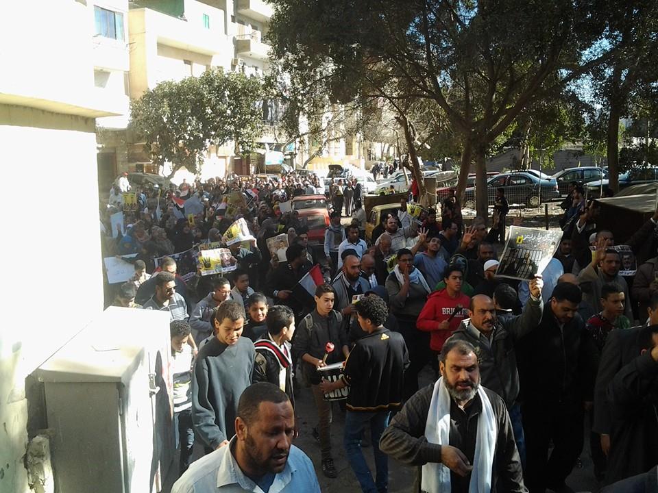 وجابت المسيرة شوارع المنطقة للتنديد بحكم العسكر وسط استمرار توافد الحشود بصورة كبيرة وتفاعل من الأهالي برفع شارة رابعة لتأييد المسيرة.