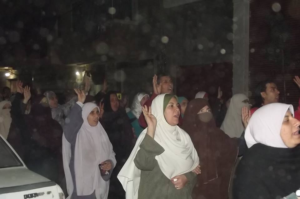 وقد هتف المتظاهرون  ضد العسكر وضد حكومة الأنقلاب (مصر ميحكمهاش سفاح يسقط يسقط عبدالفتاح) ( الدالخية مش رجالة الداخلية كلاب سعرانة ) (عيش حرية عدالة أجتماعية) (مش بنخاف ولا بنطاطى أحنا كرهنا الصوت الواطى ) , وختمت المسيرة فى منطقة الفلكى أمام مدرسة الدكتورة عائشة عبد الرحمن فى تمام الساعة الثامنة والنصف  من مساء اليوم .
