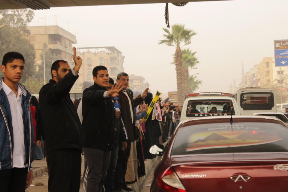 نظمت حركة ٧ الصبح بالهرم سلسلة بشرية بشارع المريوطية رافضة للانقلاب العسكري مرددين هتافات تتطالب باسقاط الانقلاب وعودة الشرعية .