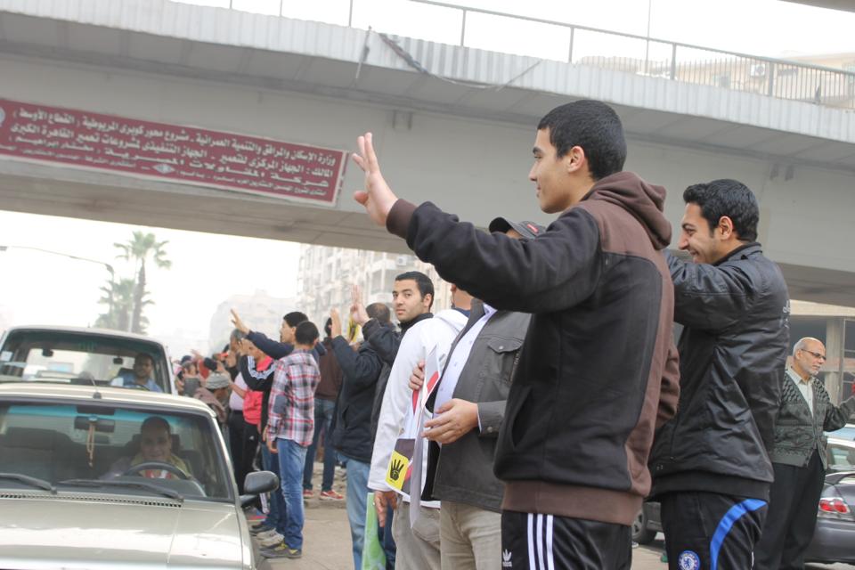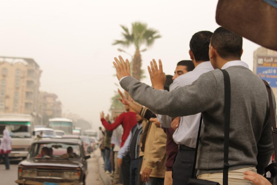 سلسلة بشرية وهتافات ساخرة لحركة7الصبح بالهرم