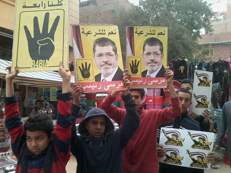 نظمت حركة طلاب كرداسة مع الشرعية فعالية "قطار الشباب"، واصطف عدد من الطلاب علي جانبي الطريق في سوق كرداسة وحملوا صورا للرئيس مرسي ولافتات رابعة.
