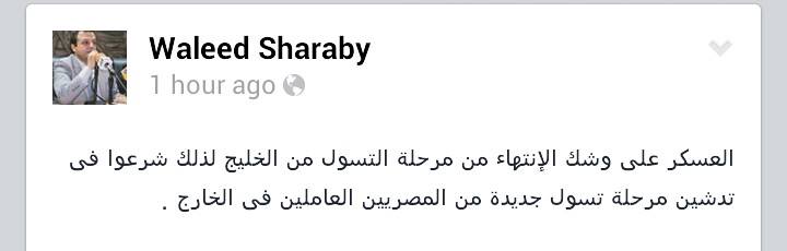 وقال شرابي بعد انتهاء مرحلة التسول الخليجي بدأت مرحلة التسول من المصريين بالخارج في مرحلة جديدة من التسول العسكري .