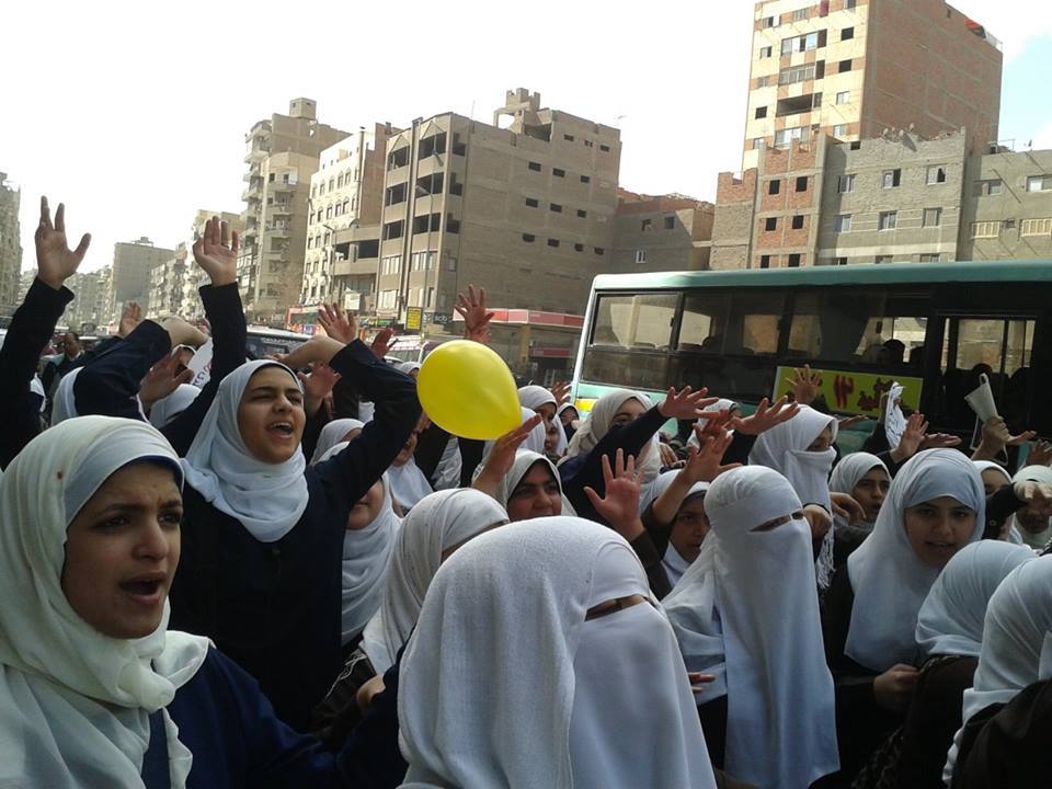 خرجت اليوم مسيرة طلابية من معهد فتيات القدس الازهري بحي الهرم في الجيزة بعد أنتهاء اليوم الدراسي ؛ وذلك بمشاركة اعضاء من أولتراس نهضاوي .