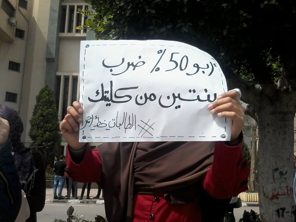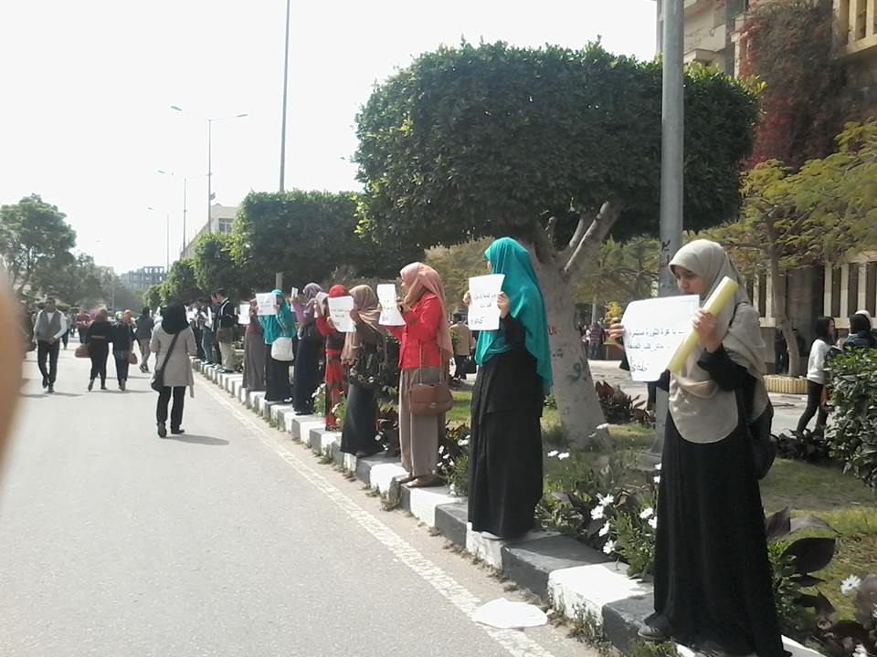 قام الطلاب برفع شارات رابعة ، واللافتات التي تستنكر ممارسات أمن الانقلاب تجاه طلاب جامعات مصر ، و نددوا بما تنتهجه إدارة جامعتهم من فصل الطلاب وإحالتهم إلى مجالس التأديب ، كما قام الطلاب بكتابة العبارات المنددة بحكم العسكر وبقضائه الجائر على جدران الكليات ، وطالبو بسرعة الإفراج عن المعتقلين ، وتوقف ما يتم بحقهم من تعذيب وضرب ، وأنهم مستمرون فى حراكهم الثورى حتى دحر الانقلاب .