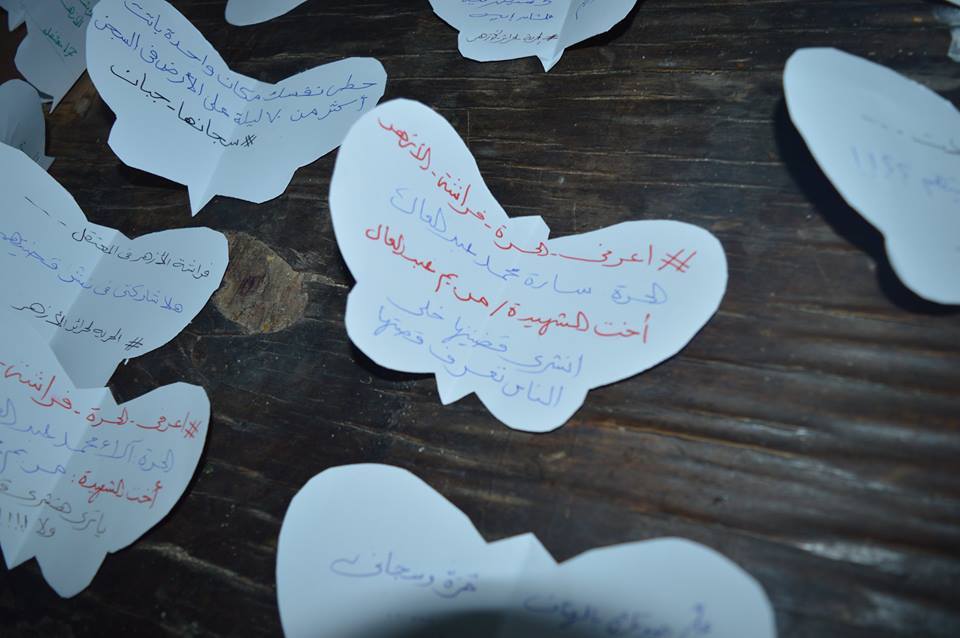 وقد هتف الطالبات ضد حكم العسكر وطالبن بالإفراج عن زميلاتهن المعتقلات، كما قاموا بتوزيع "قصاقيص" تحوي كلمات عن المعتقلات ضمن حملة ‫ ((حرية فراشة)) ، وقد شهد العرض تفاعل كبير من الطالبات بالجامعة .