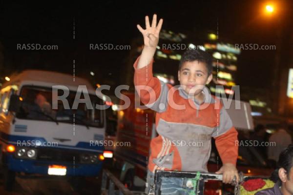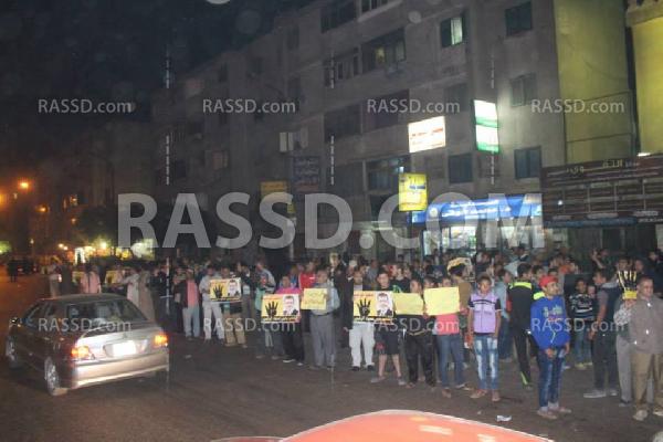 رفع المتظاهرون صور الدكتور مرسي وشارة رابعة وسط ترحيب من المارة وأكدوا على استمرار فاعلياتهم حتى دحر الانقلاب ومحاكمة القتلة.