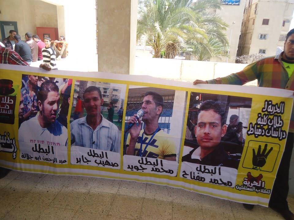 أيضا شهدت كلية الدراسات العربية والإسلامية بجامعة الأزهر بدمياط الجديدة إنطلاق وقفة تحولت إلى مسيرة داخل أسوار الكلية رفعوا خلالها صور المعتقلين والشهداء من طلبة جامعة الازهر ،ورددوا الهتافات المنددة بمقتل طلاب الازهر على مدار الإسبوع  ، بسبب هجوم قوات الأمن على مقر جامعة الازهر بمدينة نصر ، كما ندوو بقرار الإدارة بتواجد قوات الامن داخل الحرم الجامعي بشكل دائم ، واعتبروه إثارة لغضب الطلاب ، حيث أعلنو تصعيد حراكهم الثورى حتى دحر الانقلاب ومحاسبة قادته .