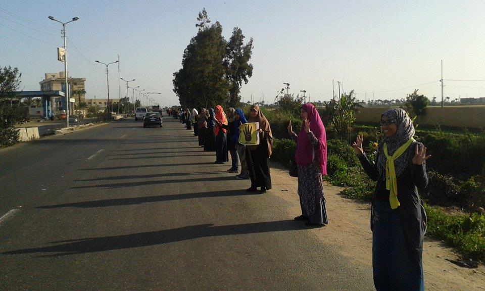 سلسلة بشرية لرافضى الانقلاب بدمياط